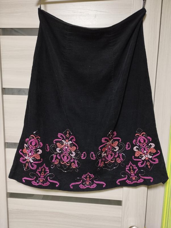 Юбка. С вышивкой. Расширенная к низу. Размер 46. Тканина 100% бавовна. На подкладке. Ткань микровельвет. Пояс 84. ПОБ 54. Длина 64.