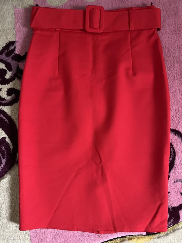Спідниця червона класична з стильним поясом. Тканина дуже класна)