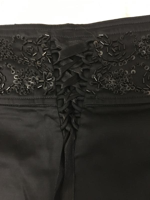 В поясе 44см ( +2-3 см тянется) бедра 50 см тянется/ длина 56-57 см/ юбка красивенная расшита черным бисером