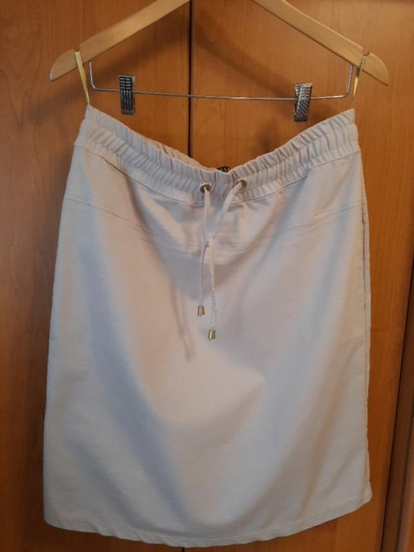 отличное состояние, одевалась один раз. ткань немного тянется, два кармана по бокам,одная сзади.пояс на широкой резинке и кулиска.замеры в свободном состоянии, но ткань тянется.замеры:пот-42+см,поб-54+,длина-58см.