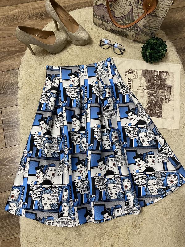 спідниця ( ретро стиль) розмір М, у складі поліестер, модель сонце кльош. Довжина 70см., півобхват таліі 36см., бедра вільно, низ 130см.