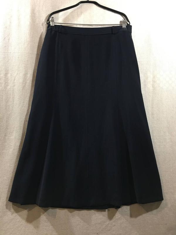 Европейский бренд «Marcona» создает высококачественную женскую одежду размерным рядом с 36 по 52 размер. В ассортименте коллекции на все сезоны для женщин старшего и среднего возраста, которые хотят выглядеть стильно и элегантно в любом возрасте. Модели выполнены в разных стилях и цветовой гамме, имеют идеальный крой и безупречную посадку по фигуре, подчеркивают привлекательность женщины, ее неповторимость и индивидуальность. Цвет темно-синий, подкладка в тон; ткань верха тяжелая, плотная, хорошо лежит и драпируется; на поясе предусмотрены петли для ремня, спереди и сзади разрезы высотой 23 см. Длина 78 см, ПОТ 44 см, ПОБ 57 см, ПО низу 103 см