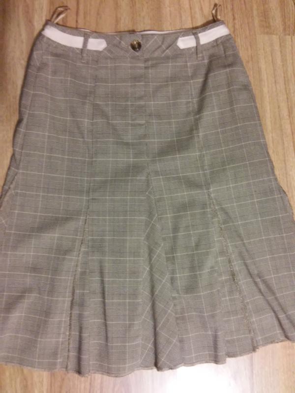 Юбка в тонкую клетку, фасон расширенный с клиньями,красиво подчеркивает фигуру,размер 36 европейский,состояние отличное.