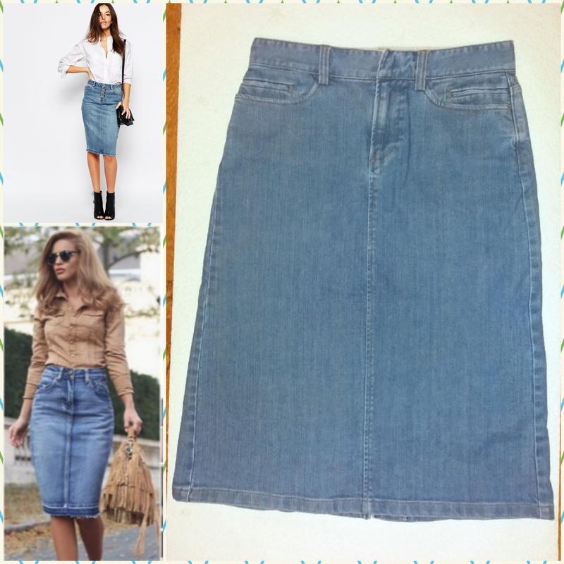 Теперь еще и в intagram: fashion_and_chic_style Юбка из светлого качественного голубого джинса средней плотности, подходит на лето и демисезон. Джинс не мнется, поэтому глажки особо не требует. Впереди на молнии и на застежке, сзади разрез шлица, по силуэту прямая, легкая трапеция. Два кармана сзади и четыре впереди, из них два малюсеньких и два стандартных. Замеры по изделию: длина 64,5 см, длина шлицы 29 см, ПОТ 35,5 см (тянется до 1.5 см), ПОБ 46 (тянется до 52 см), ПО по низу 50,5 см.