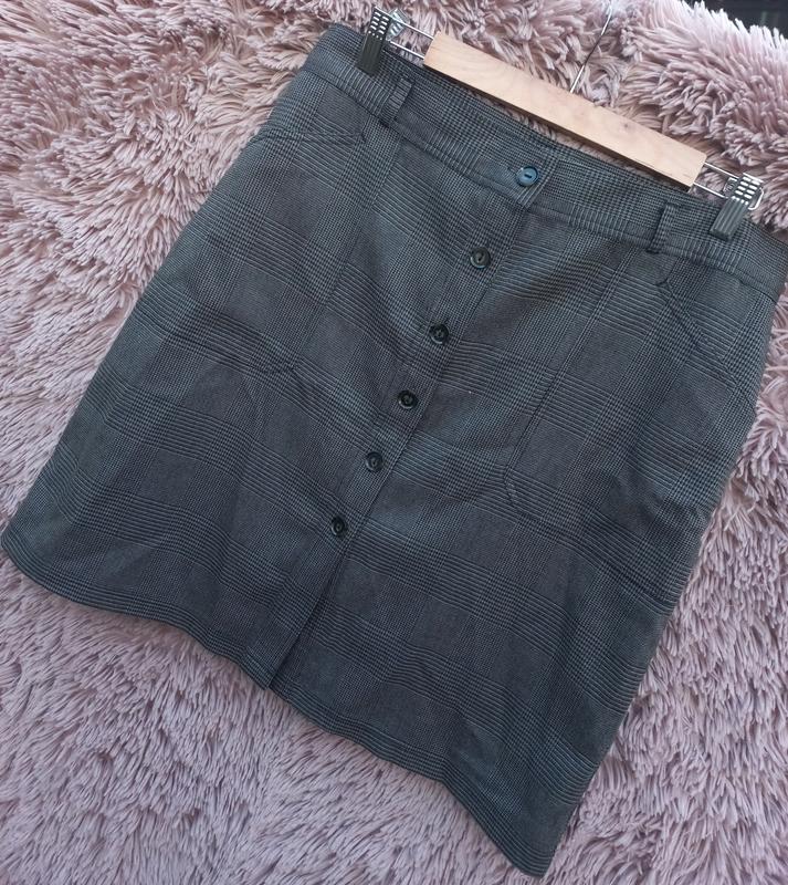 Стильная юбочка, размер 20uk, замеры: длина 55, ПОТ 51, ПОБ 62. 63% полиэстер, 36% вискоза, 1% эластан.