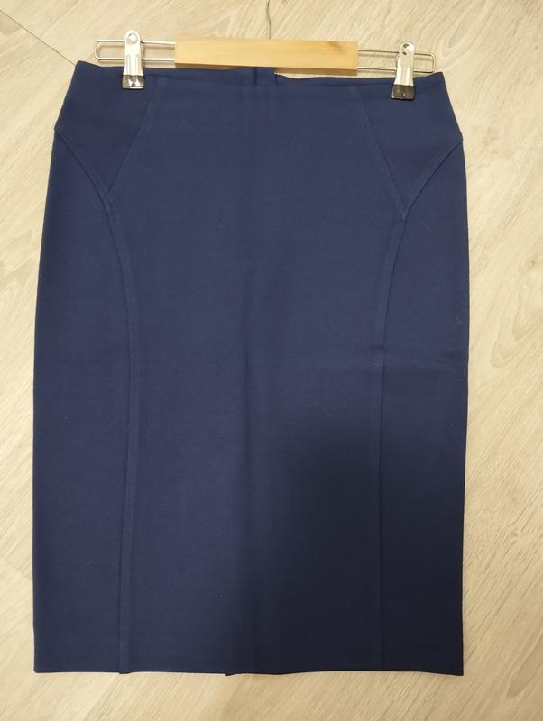 Очень хорошее состояние, красиво тянется, приятный синий цвет. Сзади молния. ПОТ 35, ПОС 40, длина 52.
