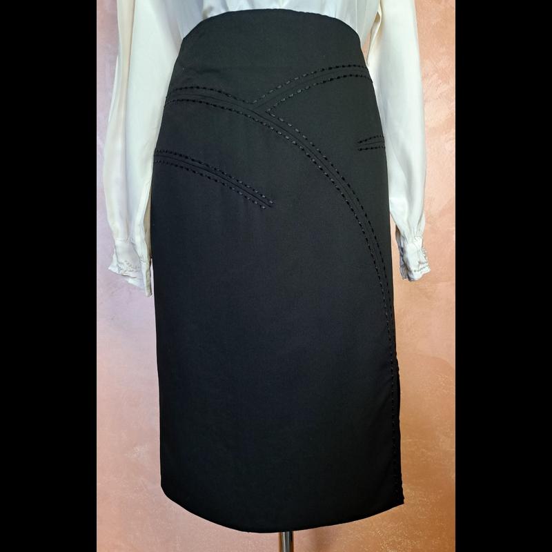 Классическая черная юбка с подкладкой.Распинка на ноге,та сзади.Замеры: Полуобхват талии 41 см Полуобхват бедер 52 см Длина 63 см