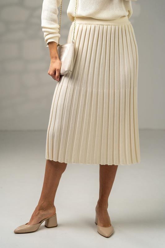 Юбка плиссированная вязанная трикотажная молочного цвета длиной миди. модель 2080 trikobak...