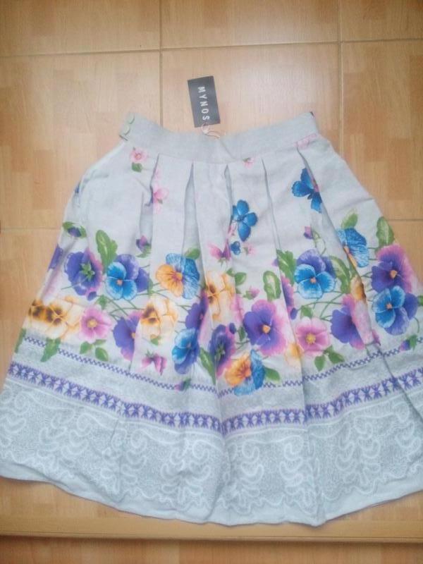 новая. плотный лен с набивным цветочным принтом. пояс 78 см. не тянется! общая длина 70 см