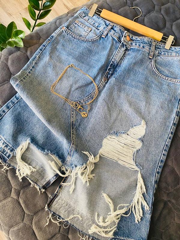 Трендовая стильная юбочка 💙👑💙 Подовжена, рвана ,з потертостями. Имеет карманы спереди и сзади. ПОТ 42см длина 66см Стан🔥💙👌
