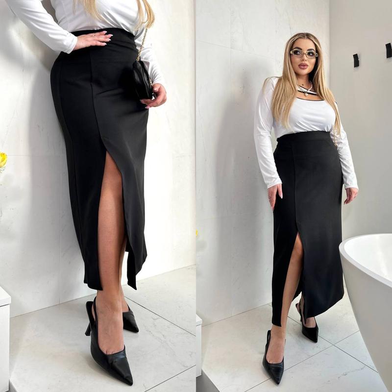 Трендова спідниця довжини максі 🔥 Матеріал • костюмний креп, без кишень та підкладки, не додає зайвого об’єму на стегнах. Трішки тягнеться, сбоку застібка Довжина 98-100 см. На поясі ззаду резинка. Мод. 261 Ціна 🏷️720 грн Розміри : 48-50,52-54,56-58 Колір: чорний.инспир
