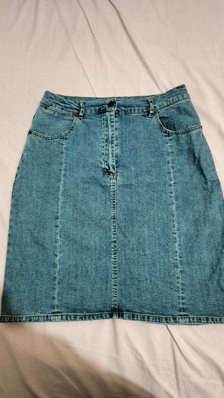 спідниця джинсова в ідеальному стані, розмір М. заміри пот- 38-42 см поб- 49-53 см довжина -55 см