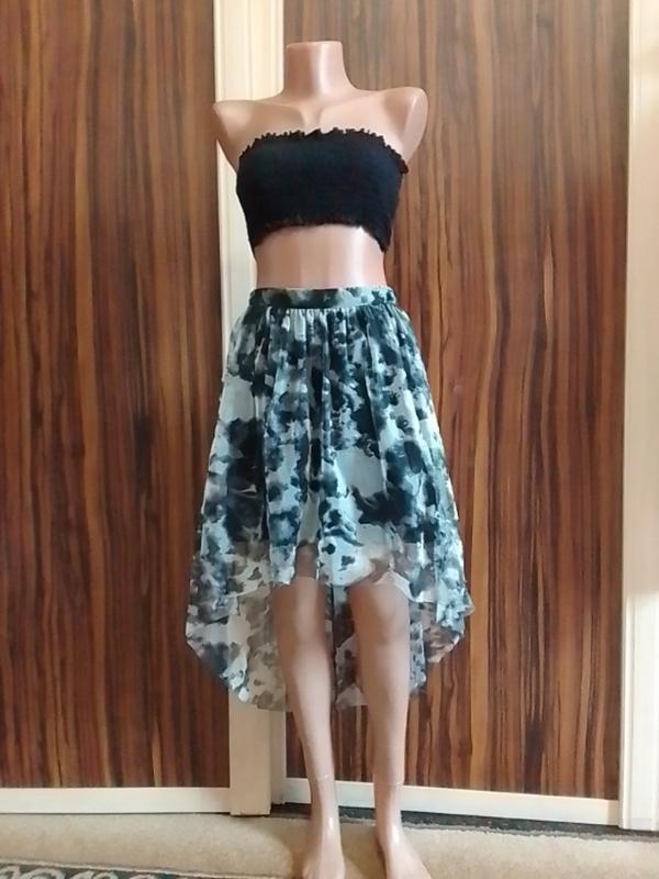 дуже гарна легка спідниця.застібаєтся на замочек. пот 35 см довжина с переді 44 см довжина з заду 78 см