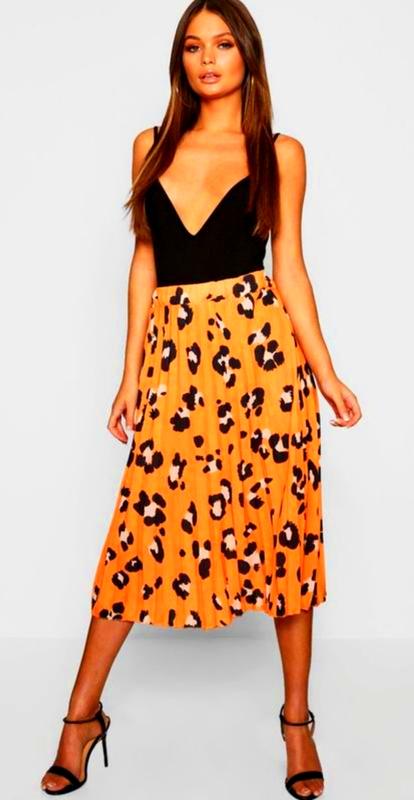 Яскрава юбка пліссе Boohoo оранжева з принтом. Новий сток.