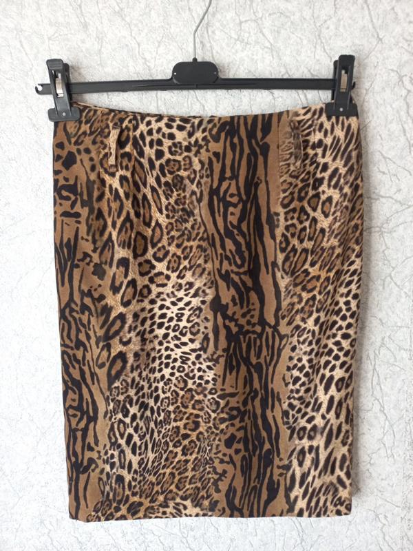 Спідниця з гарним трендовим принтом, дуже добре сідає на фігуру, на підкладці. Довжина 58, пот 36, поб 46. Трішки тягнеться