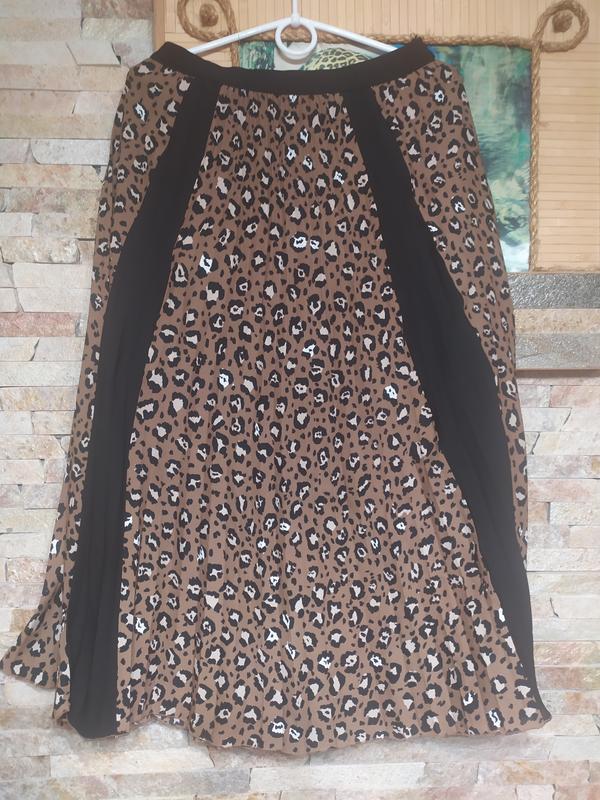 Спідниця не була у використанні.М'яка і дуже приємна на дотик.Гарно тягнеться і талії.Довжина 80 талія 34 тягнеться до 40.Поліестер.Підкладка 38.