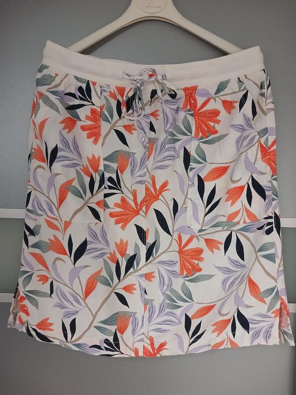 Юбка льняна цвітна в ідеальному стані р 12. marks & spencer, є кишені спереду, і сзаді, пояс на резинці, внизу по бокам маленьки розрізи. Заміри: пот 40,поб 51, довжина 52 .