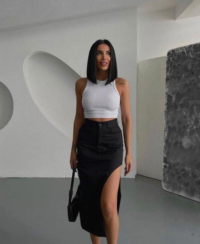 ❤Легка та романтична спідниця з фігурним розрізом "West"🧡 Тканина: джинс-бенгалін Колір: чорний, капучино, фісташковий, електрик Розмір: 42, 44, 46, 48 Висота розрізу: 43 см. Висота спідниці: 82-83 см.
