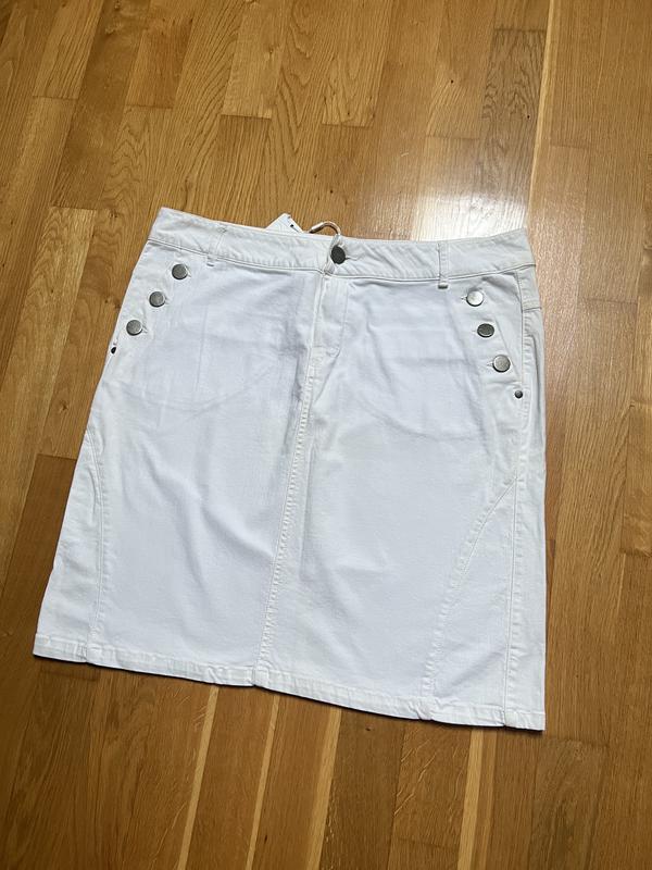 Жіноча джинсова біла спідниця середньої довжини