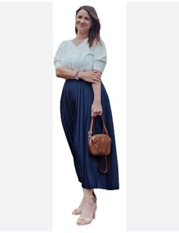 Спідниця пліссе, темно-синього кольору, довжина міді, пліссе дрібненьке, на талії резинка, є петлі під пасок, розмір М, та на L теж чудово сяде, стан ідеальний Заміри Довжина 82 Талія 32 тягнеться до 46