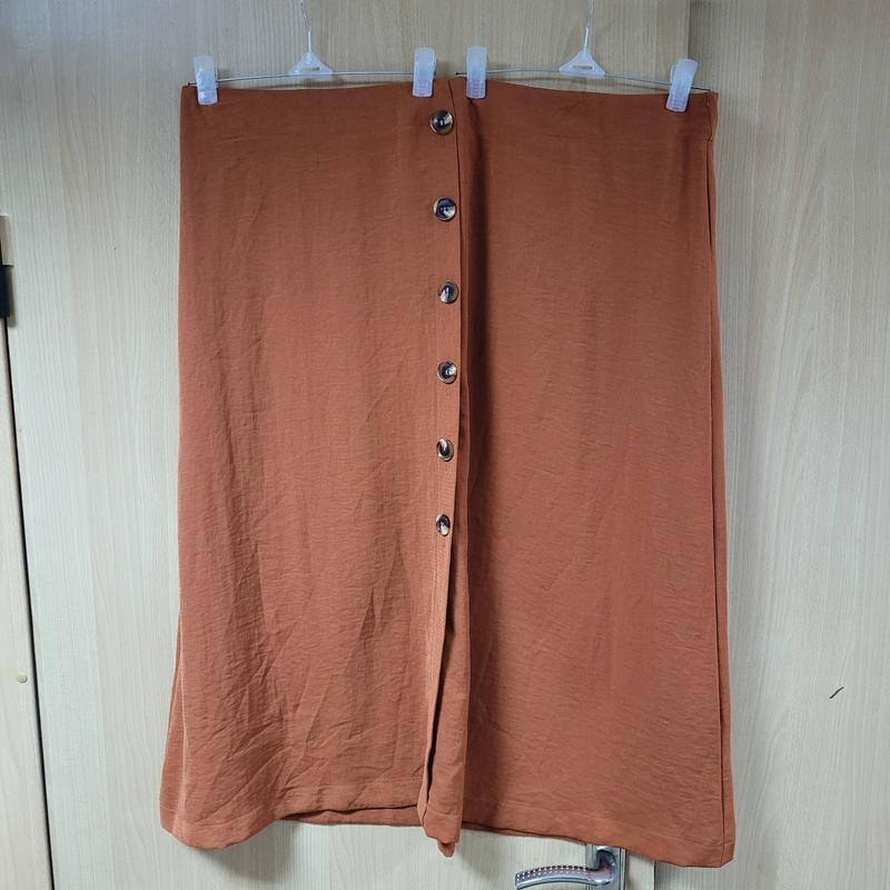 Юбка большого размера,талия сзади на резинке.Рыжего цвета. Новая, без бумажной этикетки.Люкс сток. Талия 114+, Об 134, длина 83.