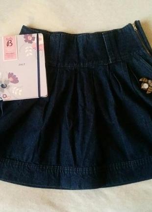 Джинсова спідниця розміру S-M. Є кармани, покрій - напівсонце, можна носити з поясом. Півобхват талії 38 см., довжина 44 см. Фото на тілі немає, додаткові фото можу зробити.