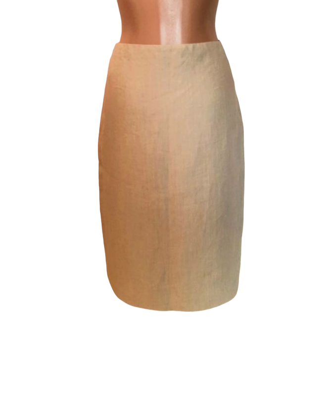 Юбка цвета беж, 100% лён, подклад 100% куприй. Сзади разрез. Длина - 55 см, ширина в талии - 36 см, ширина по бедрам - 46 см.