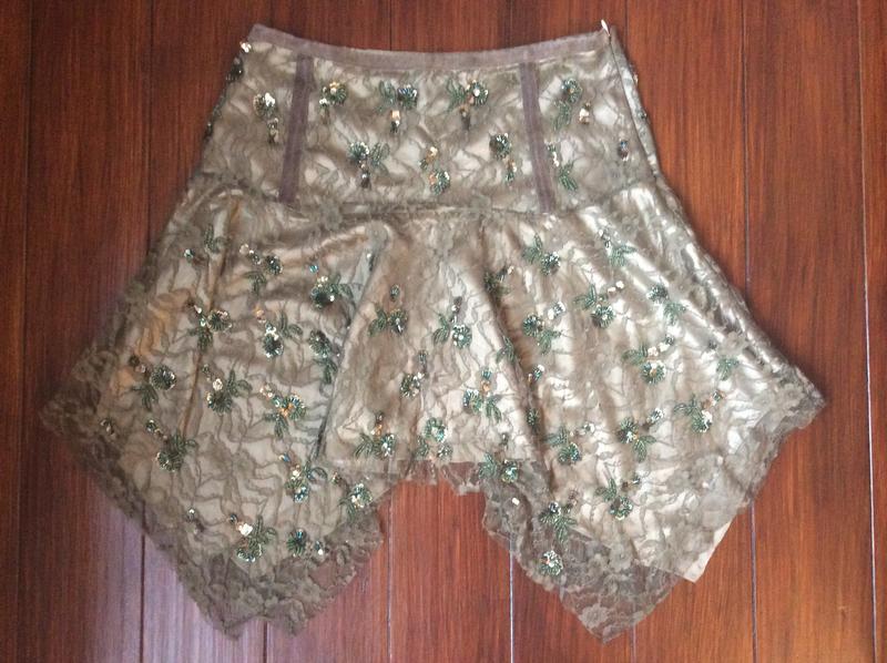 Красивенная нарядная юбка.Верхний слой сетка богато расшита бисером и паетками.Сбоку потайной замок.Нюанс - на подкладке есть маленькие пятнышки
