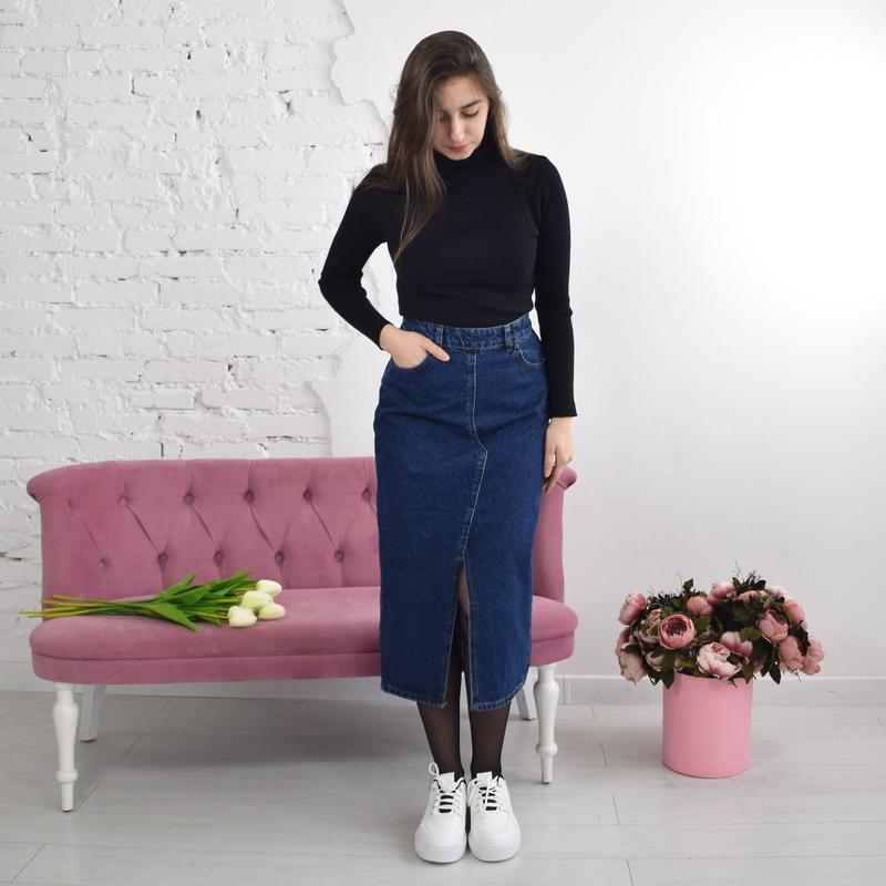 юбка джинсовая женская меди стильная М замеры: длина 98см,ПОТ 36см, ПОБ 49см.