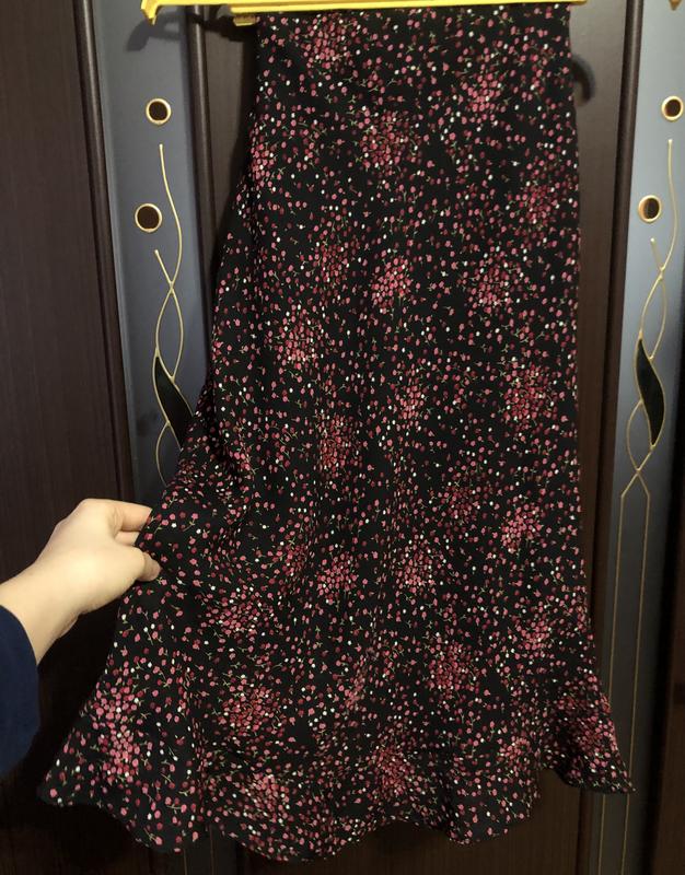 Очень красивый актуальный принт, платье миди elizabeth shelton, по низу рюши, силуэтно сидит, по фигуре. Черный цвет в цветочный принт 🌺 Размер s