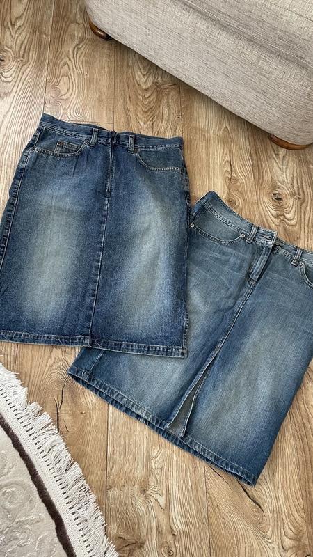 новые джинсовые юбки, не одевались ни разу, одна имеет разрез спереди, другая имеет по бокам маленькие надрезы. размер м