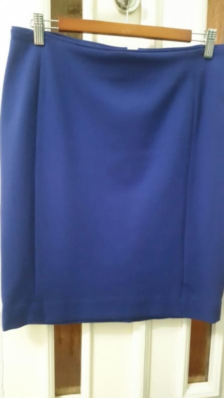 Юбка-карандаш H&M сине-сиреневого цвета, стрейчевая, спереди и сзади декоративные швы, сзади молния золотого цвета, внизу шлица. Размер 42( немецкий). Обхват талии 80 см, обхват бедер 96 см, длина 52 см. Вещи личные, не С/Х.
