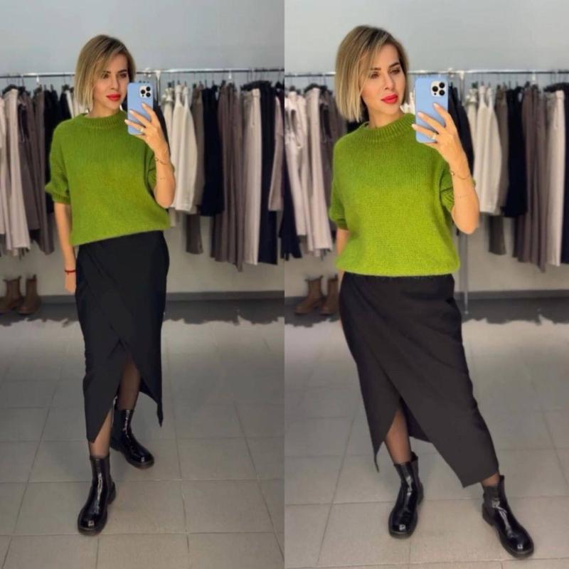 💎Юбка Модель 126 Цена: 1000грн Размер: 48-50, 52-54, 56-58 Ткань: костюмка барби Цвет: черный, графит. Стильная юбка длины миди на запах. С боку застежка, втачной пояс, высокая посадка. Изделие декорировано запахом с клинообразным вырезом. ⭐️Замеры: 🖇48-50 Талия 82 см Бедра 111 см (растяжимость 2-3 см) Длина 87 см 🖇52-54 Талия 90 см Стегна 120 см (растяжимость 2-3 см) Длина 87 см 🖇56-58 Талия 100 см Стегна 128 см (растяжимость 2-3 см) Длина 87 см