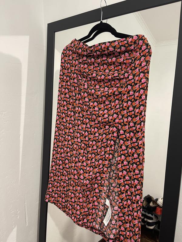 Легкая юбка в цветочный принт Не подсвечивается Имеет сборку в области талии Размер м