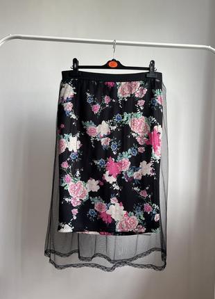 Вишукана спідниця міді Висока посадка приємна тканина до тіла Квітковий принт Стан ідеальний Заміри П.о.т-44-49 П.о.б-52 Довжина низ -69 Довжина верх -81