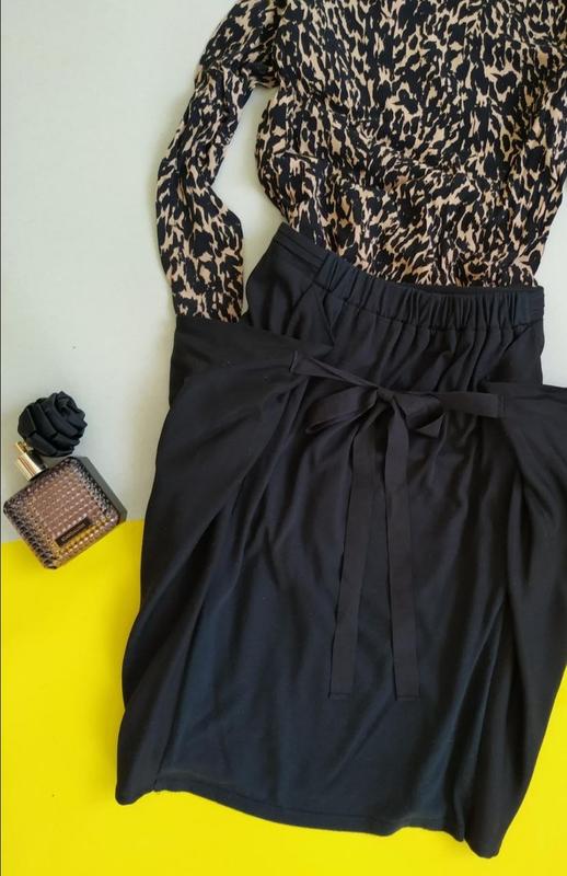 Юбка миди интересного кроя с карманами-шариками, на завязках, по талии резинка, на подкладке, сзади ткань трикотажная, производство Италия р. L, подходит на М Длина 60см Полуобхват талии 40-45 см( тянется) Полуобхват бедер 60см Стан идеален без нюансов, практически новая, одевалась пару раз