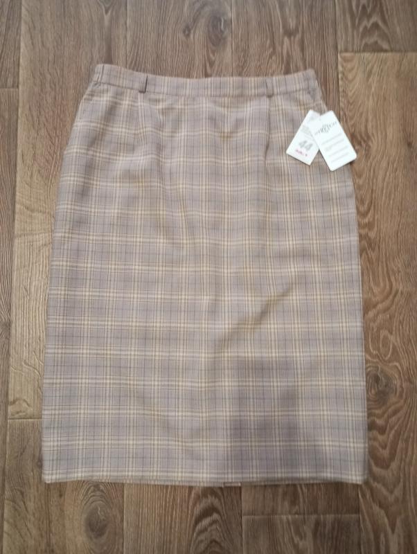 Нова, напів вовняна спідниця, без будь-яких дефектів. Тканина щільна, не груба зовсім ( весна, прохолодне літо, осінь), схожа на тканину костюмного типу. Є кишені, застібається ззаду на приховану блискавку та прихований гудзик. Гарні кольори ( останнє фото, кремовий, світло бузковий). Довжина 73 см, пот 42см тягнеться 45 см, поб 56 см.