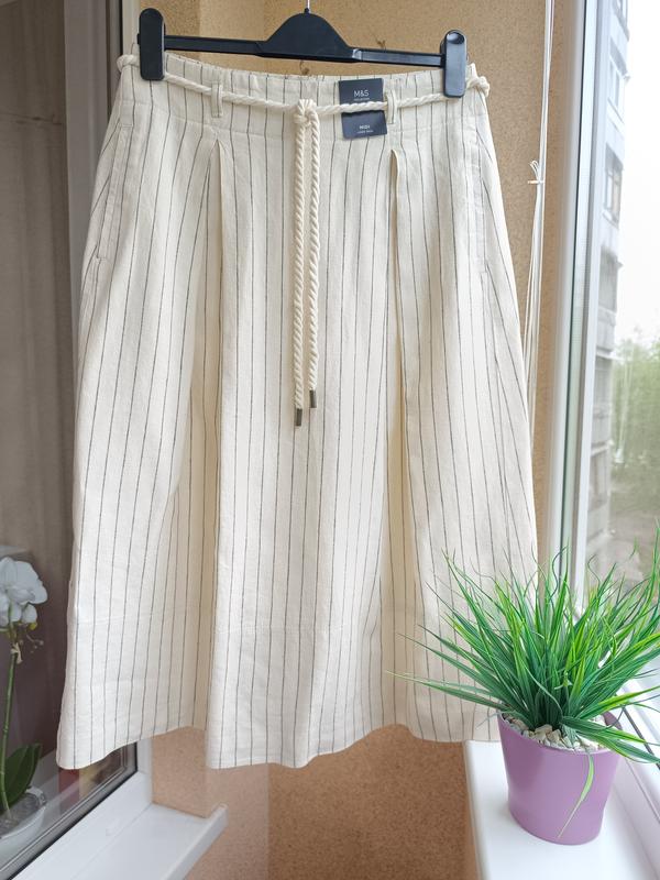 Супер стильна літня спідниця міді в смужку зі вмістом льону