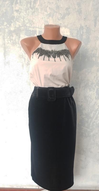Элегантная бархатная юбка длины миди, с разрезом