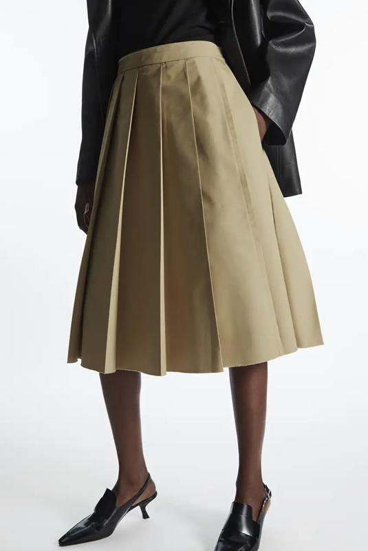 Виготовлена зі структурованої суміші бавовни, ця бежева спідниця довжиною до коліна має гострі складки, має А-силует і тонкі кишені з боків. Прихована блискавка збоку зберігає мінімальний силует. •Звичайна посадка •Необроблені краї Склад: 55% бавовна, 45% поліестер, підкладка: 100% органічна бавовна Розмір: 42( маломірить, краще підійде на 40) Заміри: Пот 41 Поб 60 Довжина 72