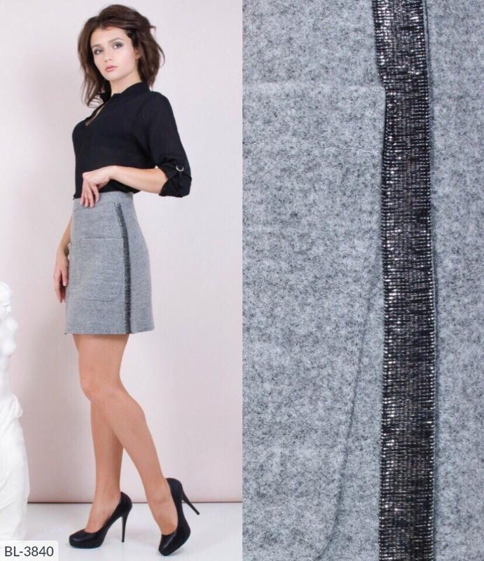Спідниця BL-3840 мод. 985 Розмiри: 42, 44, 46 Спідниця тюльпан Мода. 985 Тканина: італійський Кашемір, на основі Накладні кишені, декорована-стрічкою Фурнітура: потайна змійка, гудзик Довжина виробу: 46 см