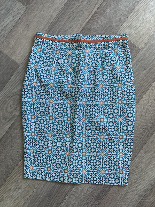 Юбка, как новая, нет следов использования, без дефектов. Плотно прилегает к талии, на молнии сзади. Есть небольшой разрез. Ткань плотная, слегка тянется. Длина юбки 62 см, в поясе 40 см, ПОБ 51 см, разрез 14 см.