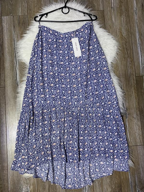 Новая легкая стильная юбка Per Una Длина спереди 78см, сзади 93см. Пот 37см Поб ориентировочно 63см (свободная) Размер 38. Сзади застежка.