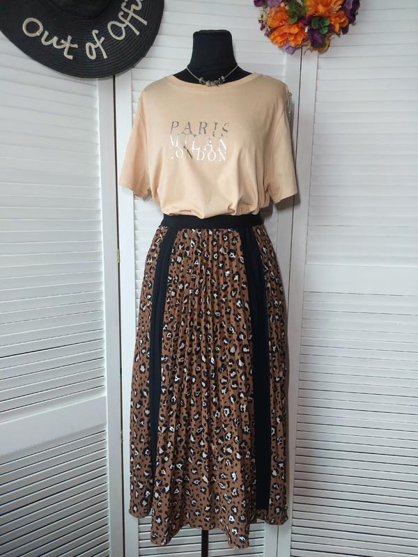 Юбка миди плиссе черная коричневая с принтом леопардовий принт stradivarius