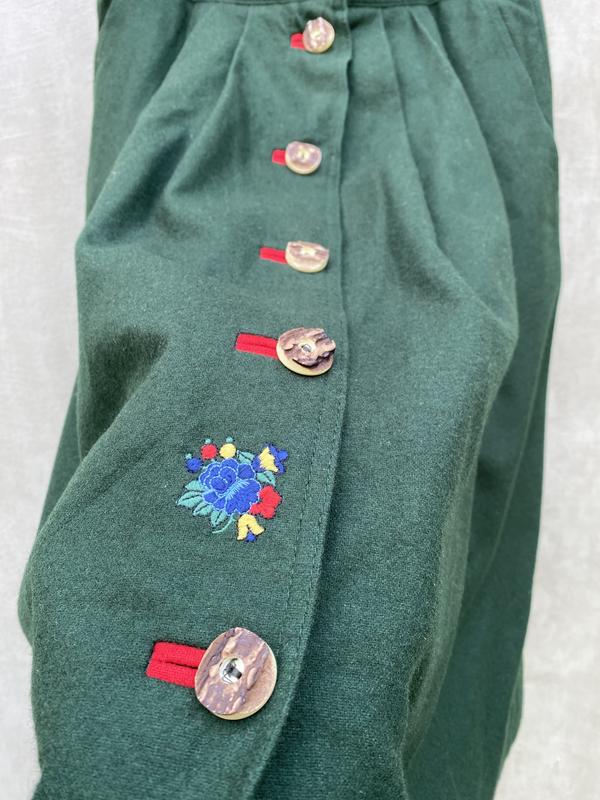 Спідниця нереальної якості, шерсть і кашемір, тонка м’яка приємна тканина у ідеальному стані, повністю на підкладці, є бокові кишені, якість топ, мила вишивка і цікаві ґудзики, шикарна річ, колір абсолютно насичений темно зелений, камера не ловить, стан ідеал Пояс 40, довжина 67, розщібається по всій довжині ЗВЕРНІТЬ УВАГУ Заміри роблю у підвішеному стані на вішаку. Довжину міряю від плеча, не від горловини. Претензії по замірах не приймаю! Розкладена, розвішана, розтягнута вами у іншому виді річ може дати інші заміри, тому для уникнення сумнівів завжди можлива безпечна оплата. Повернення немає. Фото на тілі не роблю, інші додаткові фото, фото з сантиметром можливі. Безпечна оплата, післяплата ЛИШЕ НОВОЮ ПОШТОЮ, Укрпошта тижнями везе посилки та вертає кошти. Багато гарних речей на сторінці!