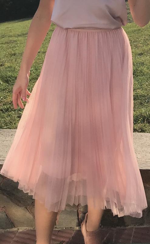 Дуже гарна спідниця рожевого кольору на підкладці. Розмір від с до л. Пояс на резинці.