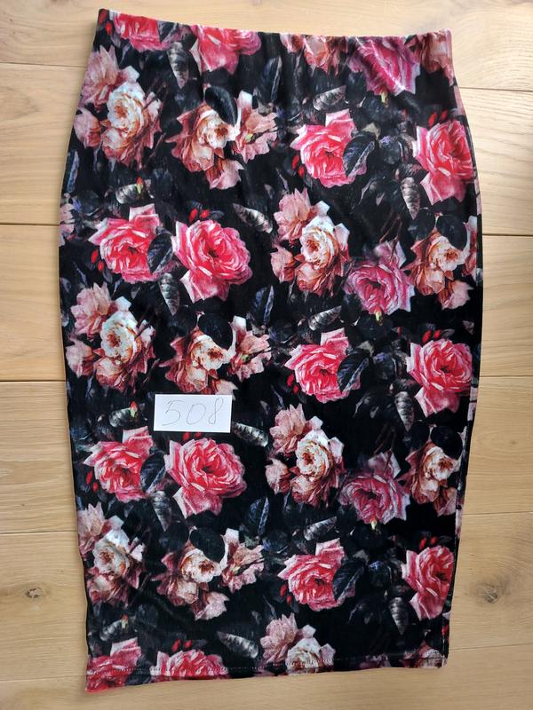 Яркая юбка миди в розы. Тканина - стрейчевий велюр. Красиво сядет по фигуре. Длина 67см Полуобъем талии 36см, тянется до 50см Полуобъем бедер 45см, тянется до 54см Полуобъем по низу 39см, тянется до 46см