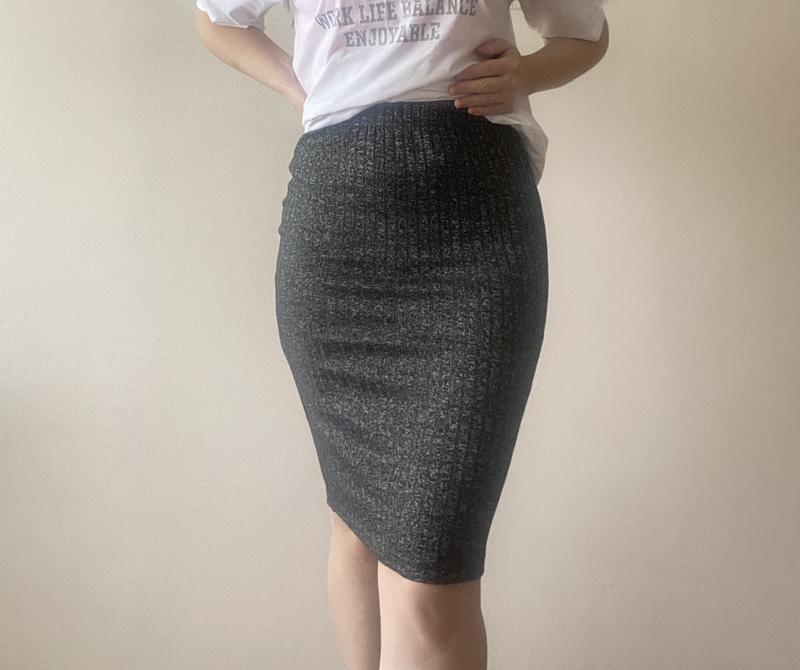 Темно-серая юбка-карандаш в рубчик, размер М, состояние идеальное