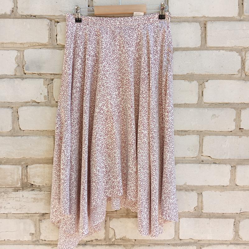 классная летняя юбка фирмы MORRIS в партнерстве с H&M, низ - асимметрия, молочного цвета с принтом "нежная веточка", с подюбником, застегивается сбоку на молнию НОТ 37 см
