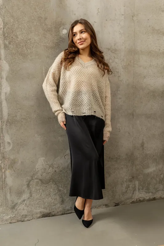 Черная миди шелковая юбка с высокой посадкой